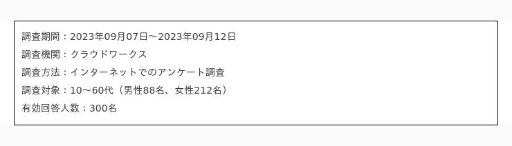 (N=300名、単一回答単一回答。2023年09月07日〜2023年09月12日に実施したインターネット調査による)