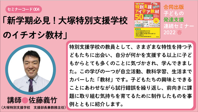 セミナーコード004「新学期必見! 大塚特別支援学校のイチオシ教材」講師 佐藤義竹(大塚特別支援学校 支援部長兼教務主任)