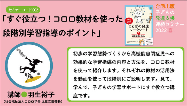 セミナーコード002「すぐ役立つ! コロロ教材を使った段階別学習指導のポイント」講師 羽生裕子(社会福祉法人コロロ学舎 児童支援部/出版事業部部長)