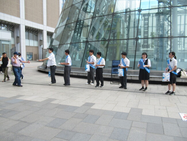 ※写真は、根室地域の高校生と札幌圏の高校生が、JR札幌駅前で署名活動や啓発資材の配布を行う様子。