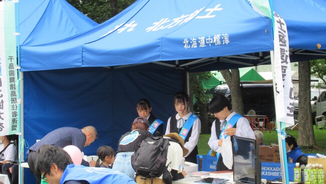 ※写真は、根室地域の高校生が地元のお祭り会場で署名活動を行う様子。
