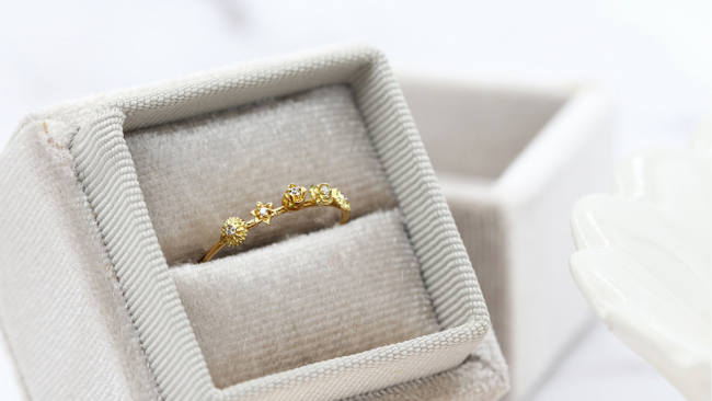 まるで花束のようなリング。贈り物にも最適です。価格もお手頃なので記念日やお誕生日のプレゼントに、ちょっと違った花束を贈ってみるのも素敵ですね。
