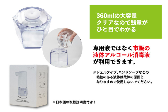 以前より弊社では置き型のアルコールスプレーボトル(プッシュ式)を取り扱い、販売してまいりました。しかし未だコロナウイルスの収束は先が見えない状況が続いております。withコロナ時代の長期化を見据えて、長期的に使えてさらに感染防止に備えた需要が増えると考え、非接触式で消毒が行えるタッチレス アルコールディスペンサーの導入に至りました。