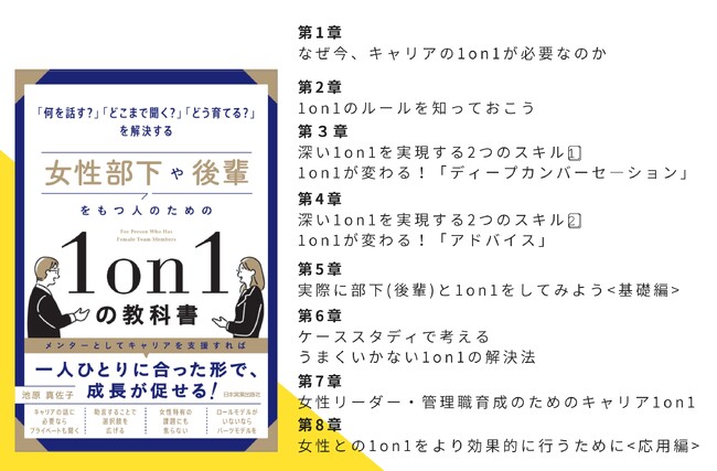 Mentor For では代表池原の著書「女性部下・後輩をもつ人のための1on1の教科書」や社外メンターマッチングサービスを提供することで、効果的な1on1および日本企業の組織開発に貢献してまいります。