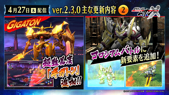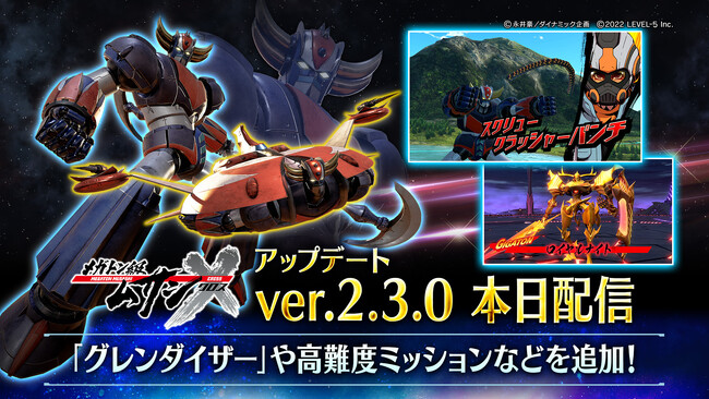 本日4月27日(木)にアップデート配信を開始!本アップデートでは、期間限定でコラボ機体「グレンダイザー」が参戦!また、第22章「継承」の続きとなるストーリーをはじめ、新必殺技などを追加しました。さらに、新たな超弩級ミッションとこれまでにない超高難易度「ギガトン」を実装したほか、よりゲームが遊びやすくなるように、いくつかの修正を行いました。『メガトン級ムサシX(クロス)』は今後もアップデートを実施予定!基本プレイ無料で配信しているので、ぜひ遊んでみてください。