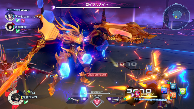 本作では、主人公たちが繰り広げるストーリーのほか、巨大ロボットならではのカスタマイズや爽快バトルを楽しむことができます。ミッションをこなして新しい装備を入手し、自分だけの最強の機体を組み上げましょう!さらに、オンラインやローカル通信を利用した最大3人での協力プレイや新要素の最大3対3で楽しめるバトルモードなど、進化した内容を多数収録!コラボ機体『マジンガーZ』『ゲッターロボ』も参戦中!