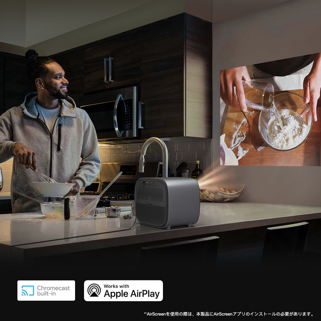 「20Wスピーカー内蔵&200インチ大画面で没入感のある体験を実現」