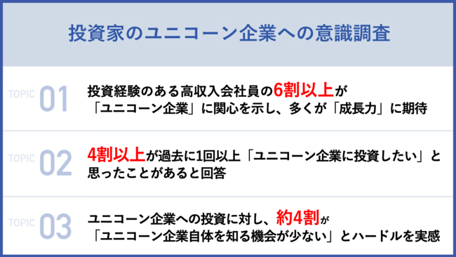 これらの結果を踏まえると、ユニコーン企業への投資機会や情報提供への需要は今後、個人投資家の間でも高まっていくものと想定されます。