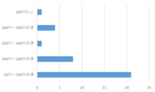 時給があがった皆様に、どの程度上昇したのかお伺いしたところ、大半が10円〜100円未満となりました。