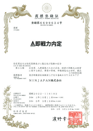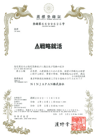 Abuild就活を運営するNINJAPAN株式会社(本社:東京都新宿区 代表取締役:新井翔太、新井景介、以下「NINJAPAN」)は『戦略就活』『即戦力内定』の商標を取得しました。