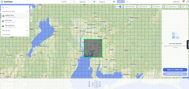 AxelGlobeでは本サービスの他にも、雲量が規定以下の画像を提供する「AxelGlobeタスキング」、同一地点のモニタリングを行う「AxelGlobeモニタリング」 をはじめとする多くのサービスを展開しています。