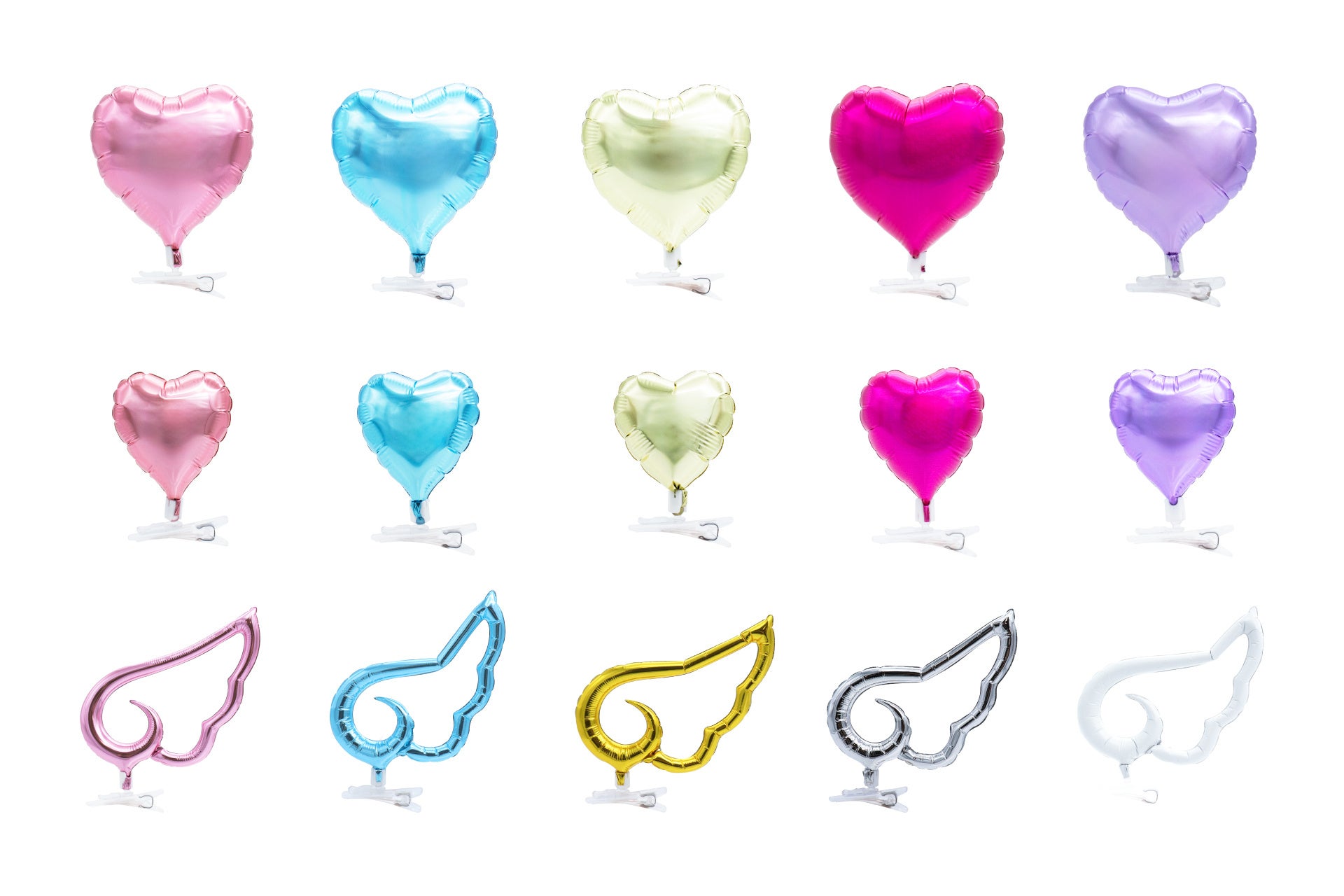 形状は大・小のハート型、エンジェルウィング型の3種類。いずれも全5色で展開します。