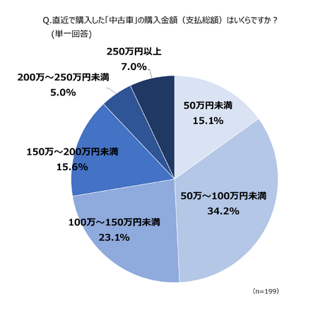 中古車購入者の49.3%が「購入金額100万円以下」と回答