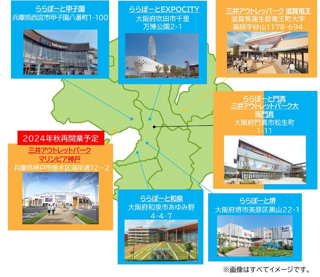 滋賀竜王、大阪門真、マリンピア神戸(2024年秋再開業予定)