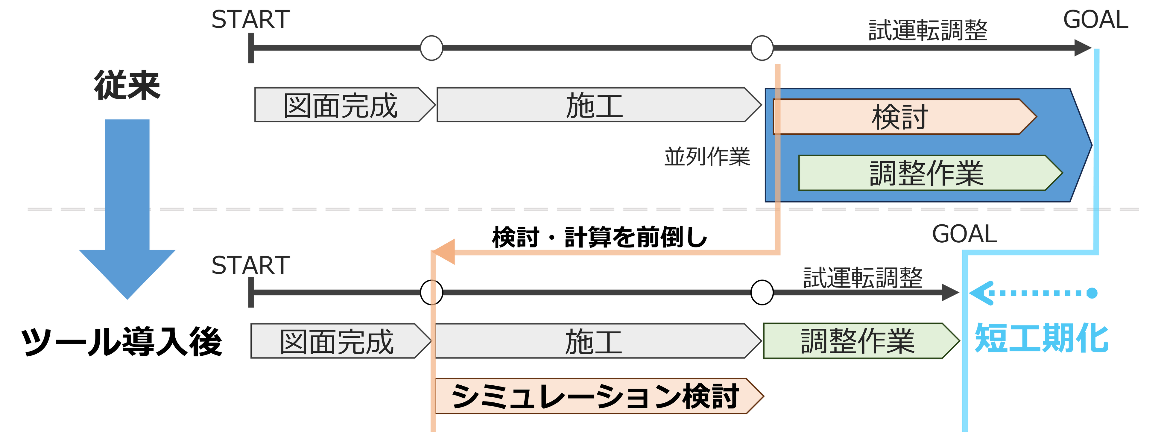 試運転調整支援ツールによる調整期間の前倒しイメージ