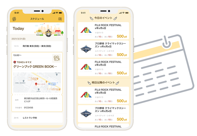 映画やフライト、美容室など予約情報を未来の予定としてチケットとしてまとめ、自動でスケジュール管理ができます。