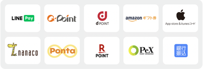 リリース当初から徐々に交換先を拡大し、現在はLINE Pay・Gポイントギフト・Amazonギフト券・App Store & iTunesコード・Google Playギフトコード・PeXポイントギフト など6,000種類以上のポイントやギフトへ交換することができます。