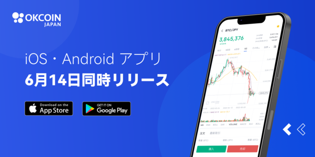 当社は、OKCoinJapan(暗号資産取引所)のスマートフォンアプリ(iOS・Android)を2022年6月14日(火)にリリース予定であることをお知らせいたします。