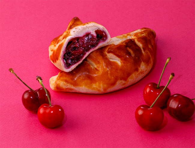 甘酸っぱいダークチェリーと練りパイならではのしっとりさっくりした食感の生地は相性抜群