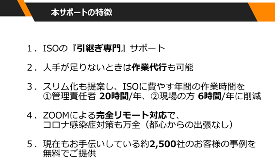 当社は、今後もISOの審査や運用の面倒な作業をすべて請け負い、