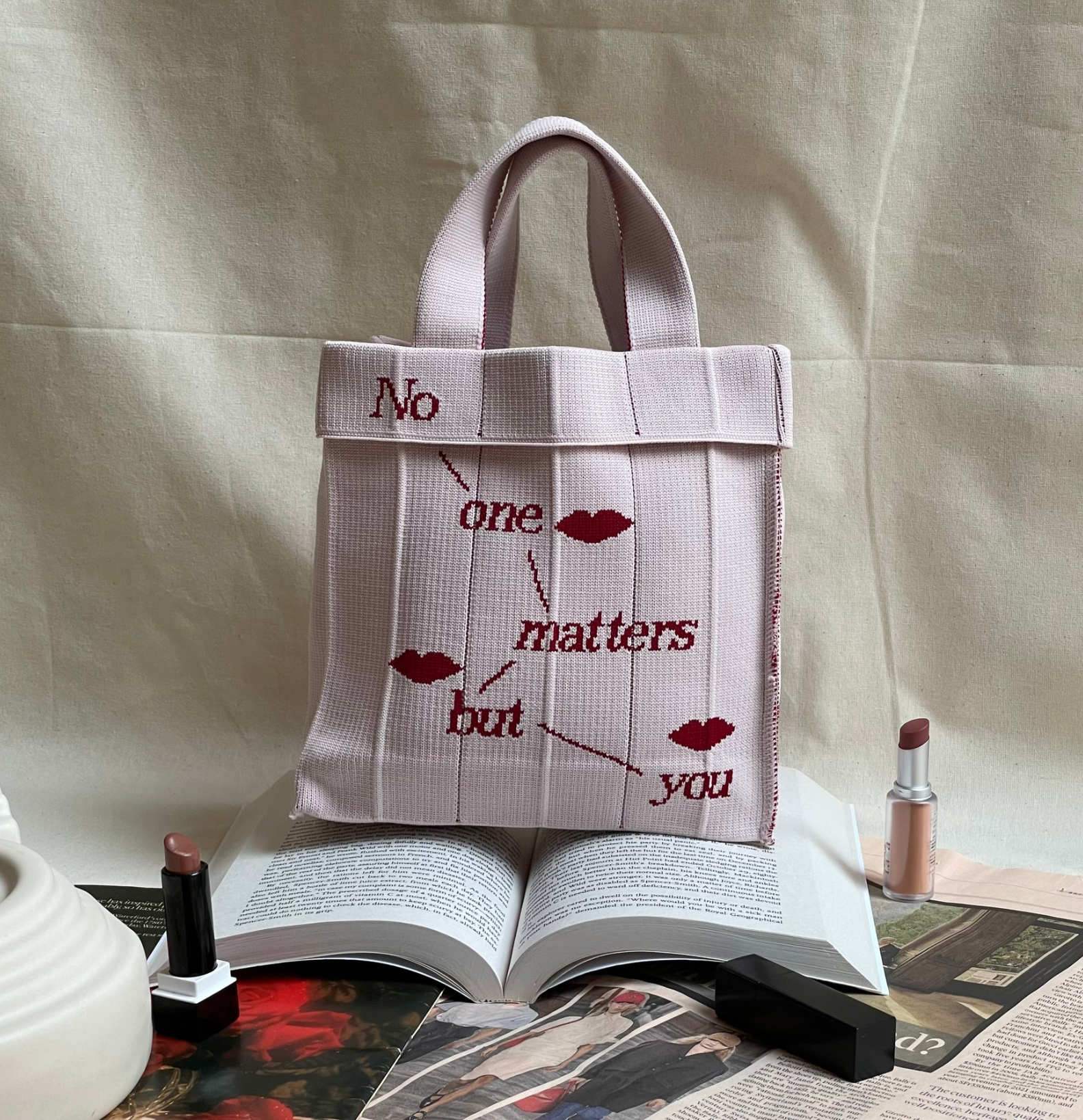 「No one matters but you(あなただけが大切)」という素敵なメッセージが入った「Co-Knitty」は、マチ付きで見た目以上の収納力を誇ります。