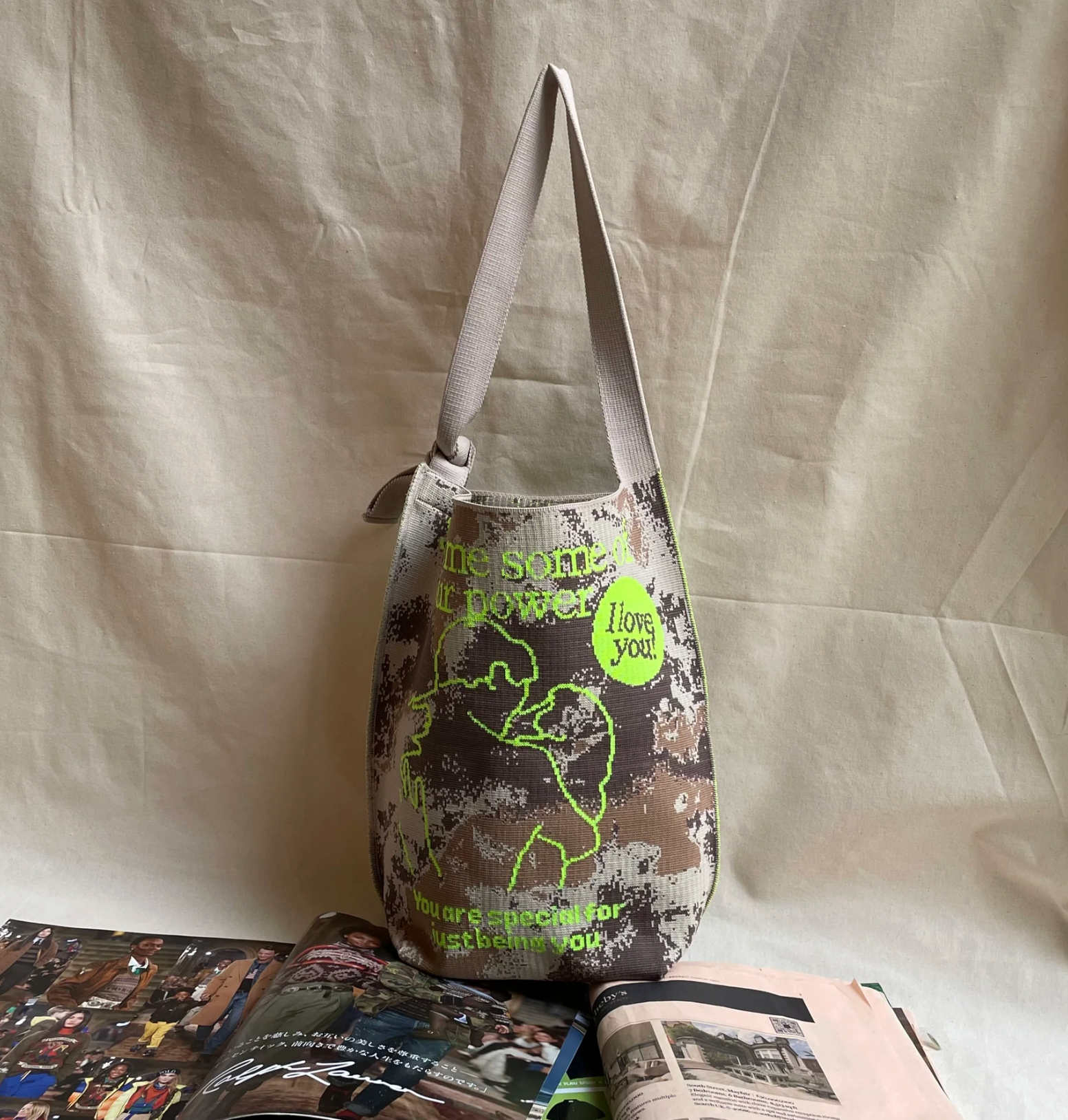 バッグに入った「Send me some of your power」のメッセージの通り、見ているだけで“パワー”をもらえそうな作品です。