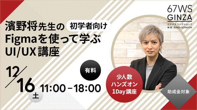 2023年12月16日開講の1日集中・セミパーソナル・ハンズオントレーニング「濱野将 のFigmaを使って学ぶUI/UX講座」の受講者募集をを開始いたします!