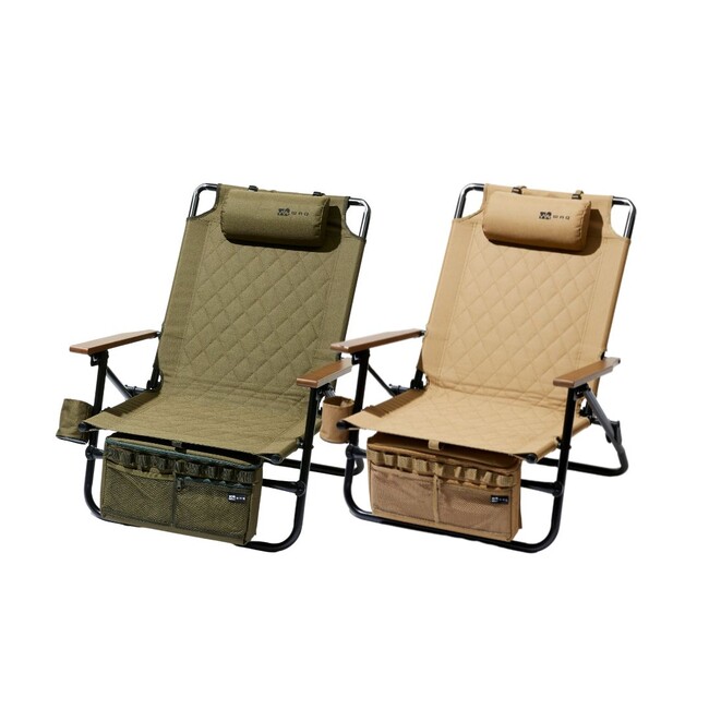本製品は、3段階のリクライニング角度、便利なストレージバッグ付き、アイアンフレーム採用で耐荷重"90kg"が特徴なロータイプのリクライニングチェアです。座り心地を追求しシートにはウレタンを封入し、製造工場テスト済みにより火の粉が当たっても燃え広がらない素材を採用することで、リラックスタイムに最適な製品となります。
