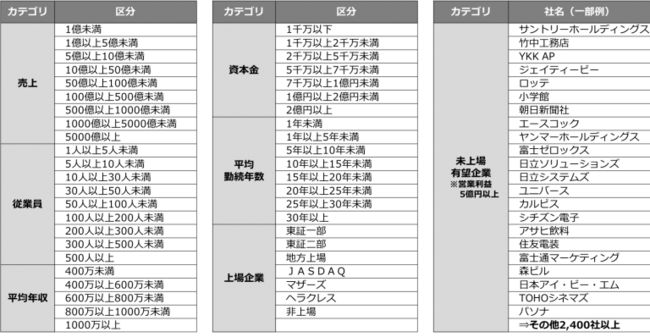 1.企業規模・・・特定の業種、従業員数、売上高など(約2,000分類以上)