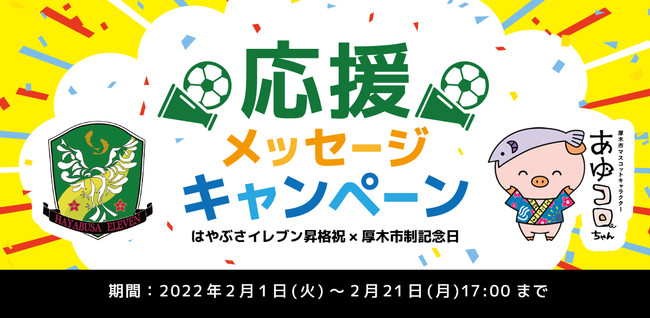 ●イベント名:『はやぶさイレブン昇格祝 × 厚木市制記念日 応援メッセージキャンペーン』
