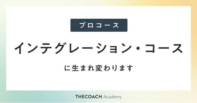 THE COACHでは、光の部分も影の部分も持ち合わせた全体性のある“私”をあるがままの“私”として統合していくコーチングを「インテグレーション・コーチング」と呼んでいます。THE COACH Academyでの最後のコースという位置づけで、このインテグレーション・コーチングを体得してほしいという想いから、「インテグレーション・コース」という名称に変更いたしました。