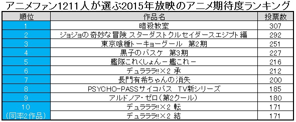 ■アニメファン1211人が選ぶ2015年放映のアニメ期待度ランキング