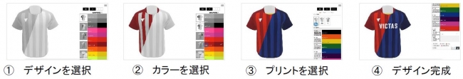 「VICTAS EZ COUSTOM」は、4ステップで簡単に自分だけのオリジナルウェアを制作することができるWEBサービスです。デザインやカラーが選べるだけでなく、チーム名など好きな文字を直接ウェアにプリントすることが可能です。