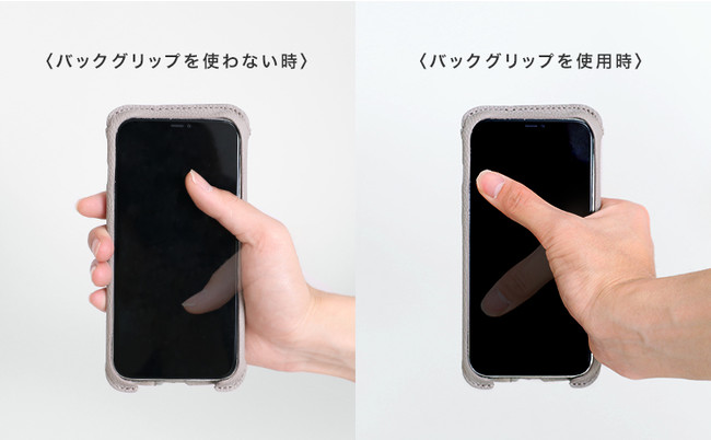 バックグリップに指を添えると片手で広範囲にわたる指の操作が楽になります。それは、画面の端まで指が届くから。使いやすさの違いを体感して下さい。