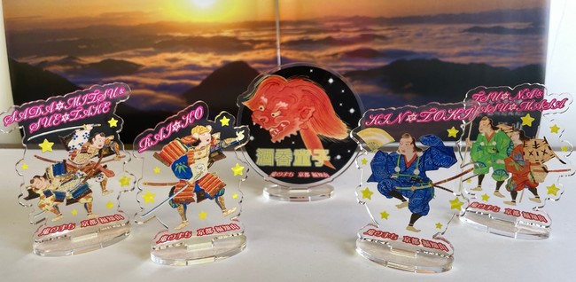 【概要】 『酒呑童子絵巻』に描かれている、源頼光や酒呑童子らを特製アクリルスタンドにしてグッズ化。鬼鬼大喜利の“鬼おもろい”投稿に全5種類をプレゼント!