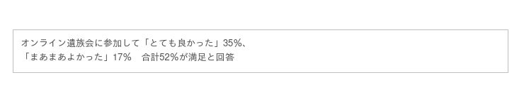 公益社のグリーフケアの取り組み 「ひだまりの会」 の会員を対象に コロナ禍をきっかけに開始した「オンライン遺族会」の満足度を調査