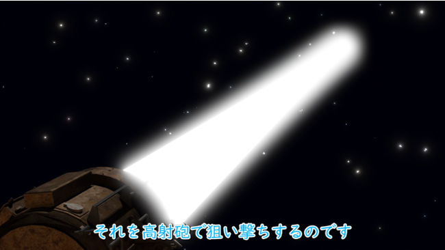 照空灯を設置していた「掩体(えんたい)」跡で、照空灯がどのように設置され、動いていたかを再現するシーン。現存する、小笠原諸島父島の照空灯写真もご覧いただけます。
