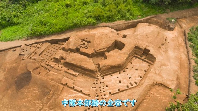 動画では中隊本部跡を実際に歩いているような感覚で、通信室や囲郭施設(いかくしせつ)など部屋を紹介しています。あわせて、空気式乾電池や化粧品の瓶など出土した遺物も解説とともにご覧いただけます。