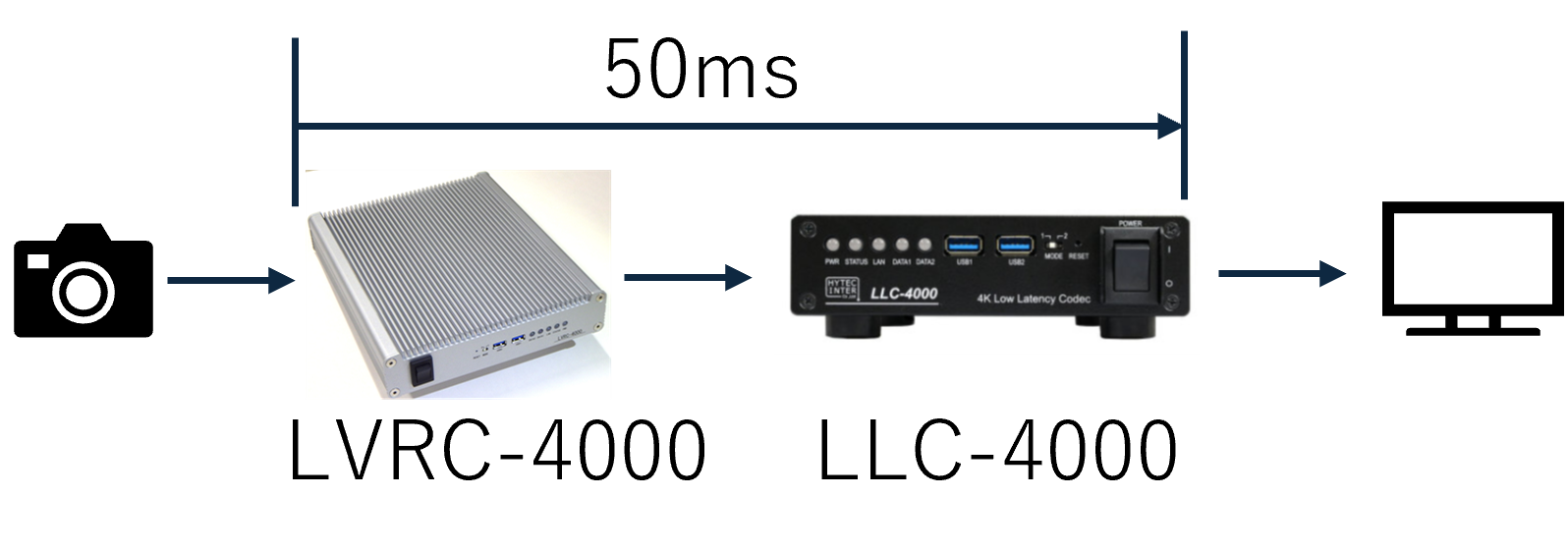 遠隔地から建機を正確に操縦するためには、建機に搭載したカメラから操縦席にあるモニタまでの遅延をできる限り短くする必要があります。ハイテクインターで開発したハイビジョンビデオエンコーダー「LVRC-4000」による超低遅延映像伝送技術により、コーデック(データ符号化)での遅延を50msecに抑え(図5)、遠隔地からも良好な操作性で正確な建機操縦が可能です。