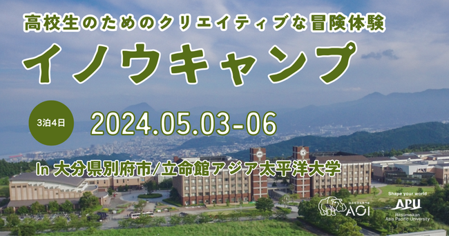 大学入試の総合型選抜(旧AO入試)の対策塾「総合型選抜専門塾AOI」(以下AOI)を運営する株式会社花形(京都府京都市、代表取締役:小澤 忠、以下当社)株式会社花形は、立命館アジア太平洋大学(大分県別府市、学長:米山 裕、以下APU)と共同で、高校生が大分県別府市に滞在しながらそこでしかできない体験を通じて地域づくりを行う、「イノウキャンプ」を実施いたします。