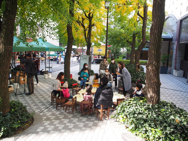 車両通行を一部規制し、道路と公開空地一体で活用。マルシェ、キッチンカー、ライブやワークショップなどのイベントが盛りだくさんです。いつもの風景とは違った空間をお楽しみください。