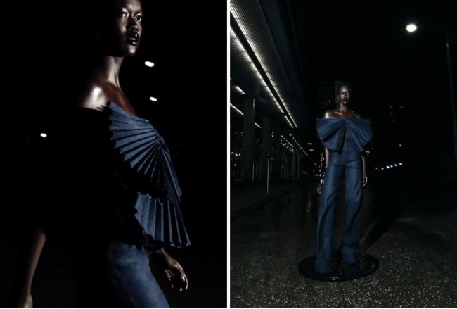 2023年2月7日 アムステルダム - ファッションデザイナーであるデビッド・ラポートは、彼の持つ豊かなデザインとG-Star RAWのデニムエキスパートとしてのテクニックを組み合わせ、オートクチュールドレスとプレタポルテ ボウ トップからなるカプセルコレクション「Denim After Dark」を発表します。両アイテムは共に、ラポートの代表的なデザインであるプリーツと彫刻的なアプローチをデニムで表現しています。