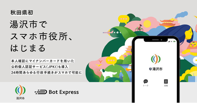 ほとんどの住民が、今、すぐに利用できるスマホ市役所「GovTech Express」を提供する株式会社Bot Express(本社:東京都港区、代表取締役:中嶋 一樹、以下 Bot Express)は、秋田県湯沢市(市長:佐藤 一夫)がGovTech Expressを活用し、湯沢市LINE公式アカウントから行政手続きが可能となる「スマホ市役所」を6月30日に開設することをお知らせいたします。