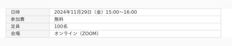 2024年11月29日(金)15:00〜16:00 Zoom(オンライン配信)