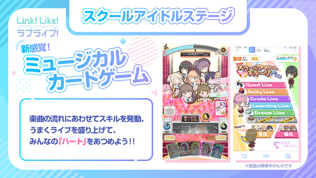 楽曲の流れにあわせてスキルを発動、上手くライブを盛り上げて、みんなの「ハート」を集めよう!!