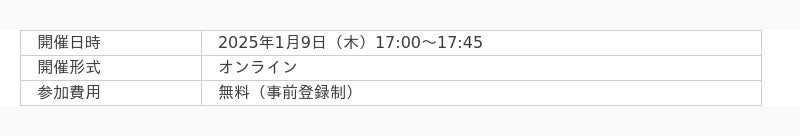 ※セミナー内容は一部変更となる場合がございます。あらかじめご了承ください。