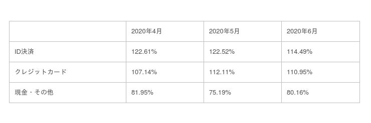 顧客単価は大きな変化なし。EC利用人口や頻度が増加。また、キャッシュレス化の流れが強化。
