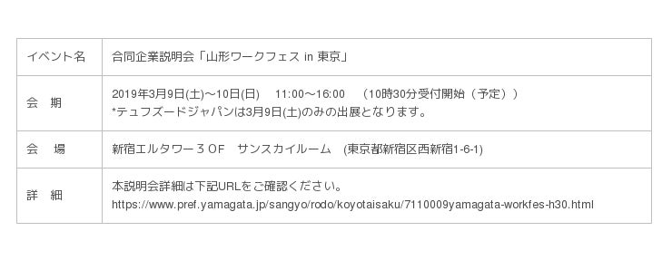 テュフズードジャパン、合同企業説明会「山形ワークフェス in 東京」出展のご案内