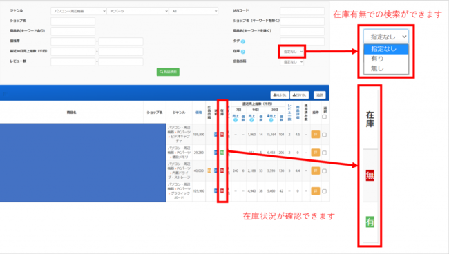 ECショップが売上を向上させるためには、自社と競合の商品在庫状況を把握することが欠かせません。ブランドやショップにとって、在庫切れは売上の減少を招くだけでなく、最終消費者のブランド離反を招くことがあり、ECビジネスにおいて重要な問題です。本機能を使用することで、ECショップは、指定ショップの商品在庫状況を可視化し、仕入れ商品の検討など、次アクションへつながる分析が可能になります。また、指定ショップごとの前年比売上指数が追加されることにより、売れている商品が在庫切れを起こしていないか調査することが容易です。ショップはさらなる成長を目指す次のヒントを見つけることができます。