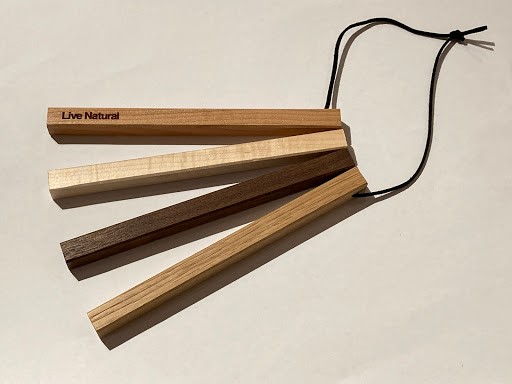 バトンには、天然木や床にちなんだ個別のメッセージが刻印されており、4本集めると、素敵なインテリア小物兼、鍋敷きになります。